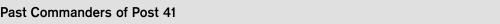 1937 W.H. Morris 1938 Marion Coyle 1939 & 1940 Charles Gentry 1941, 42, & 43 A.B. Fugate 1944 R.F. Bullock 1945 & 1946 -- no commander -- 1947 & 1948 Kenneth B. Ross 1949 Gordon Elson 1950 Luke Turner 1951 Guy Akins Jr. 1952 Welbore Moore 1953 & 1954 Homer Morgan 1955 Ivan Mitchell 1956, 57, 58, & 59 Chloe McKinney 1960 Vernon Wilson 1961 & 1962 Wesley Reese 1963, 64, & 65 Howard Haney 1966 & 1967 Floyd T. Thompson 1968 & 1969 Vernon K. Willson 1970 Walter E. Ball 1971, 72, 73, & 74 Vernon K. Willson 1975 & 1976 John E. Vennink 1977 & 1978 Jack C. White 1979, 80, & 81 Amil Stalder 1982 Charles Lawrence